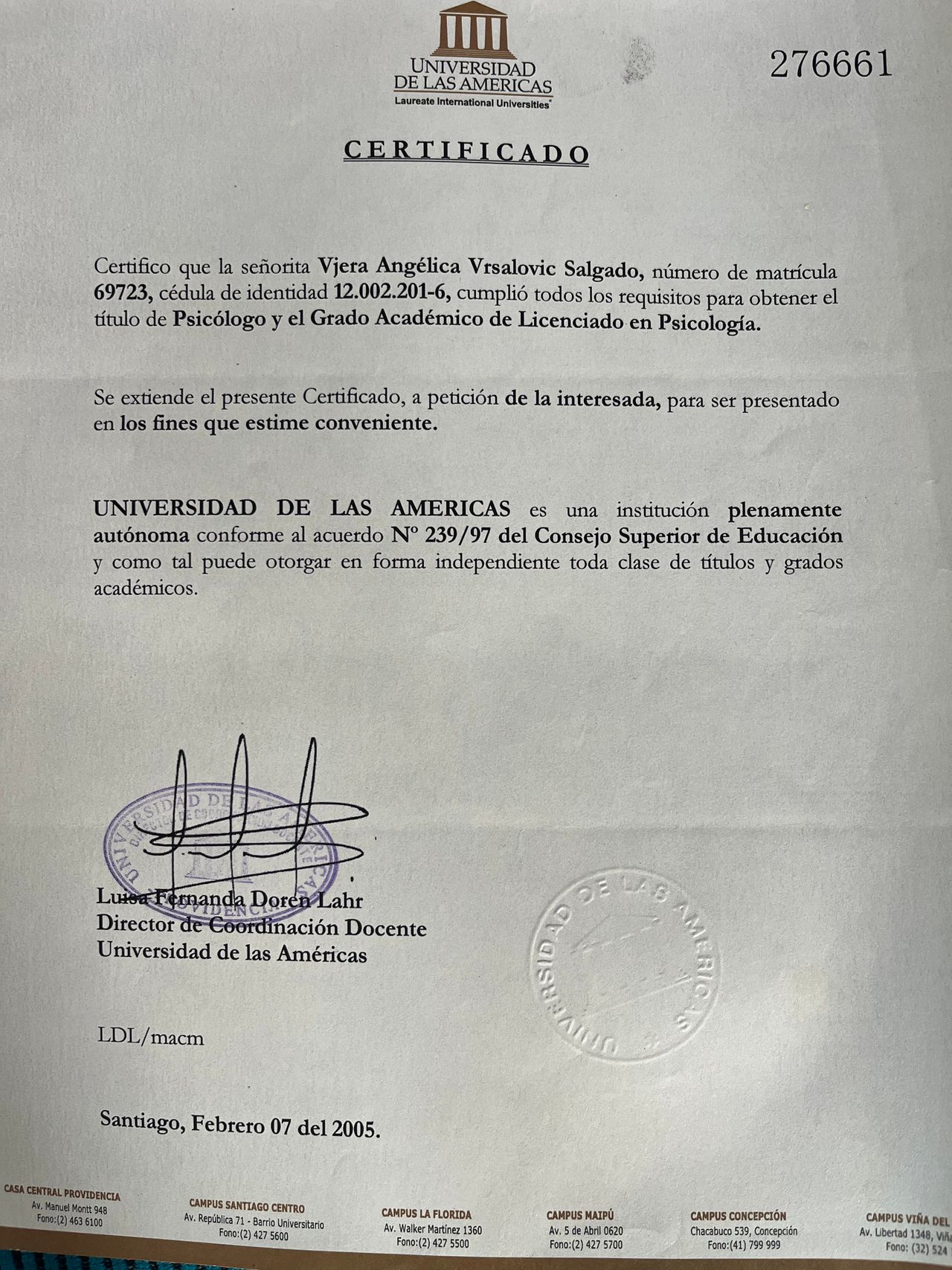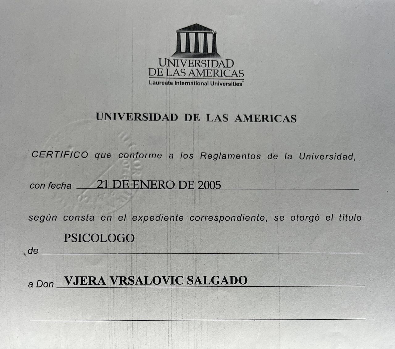 Mi nombre es Vjera (Viera), soy psicóloga, 18 años de experiencia trabajando como psicoterapeuta y mi trabajo se ha enfocado en terapias individuales, de pareja y familia.